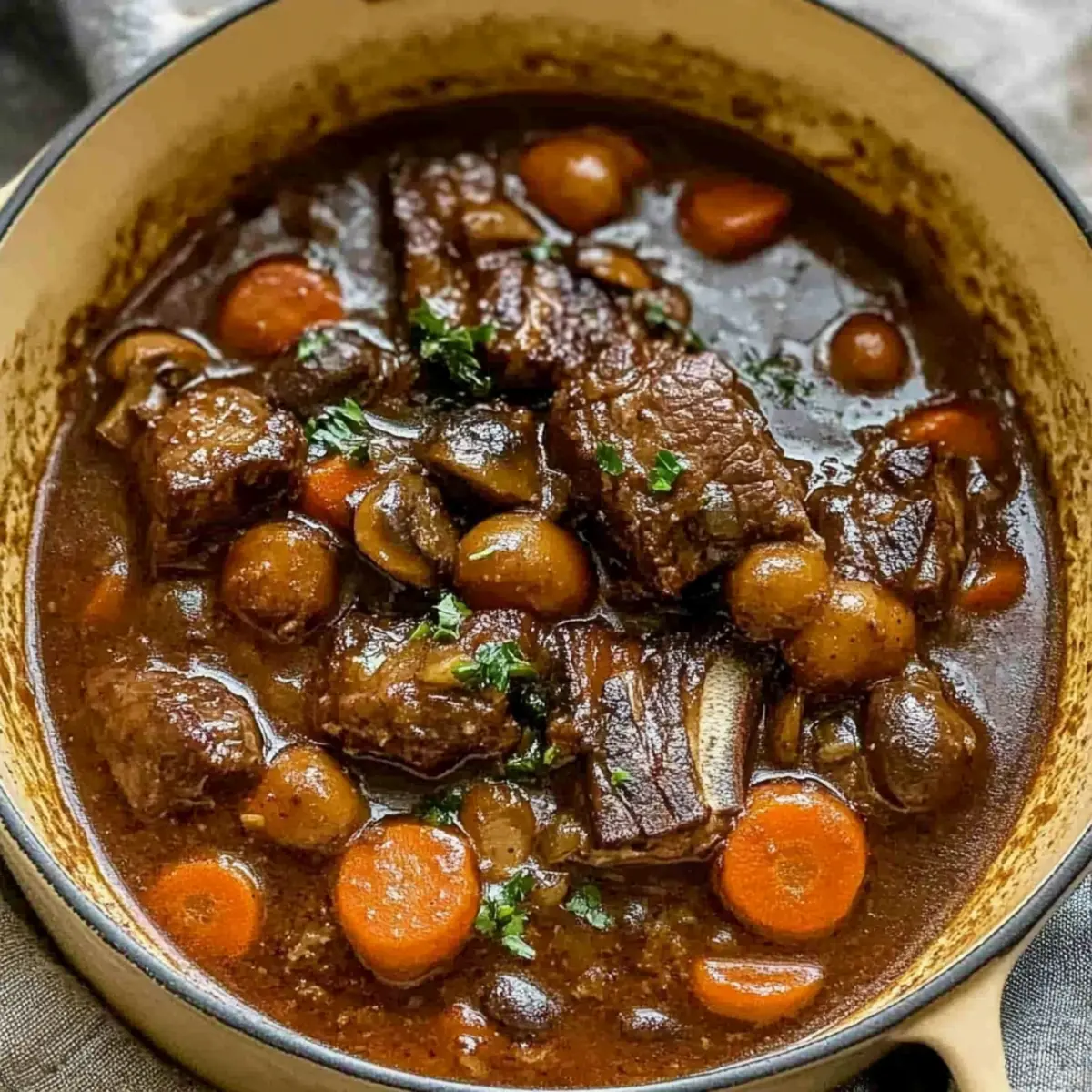 Comforting, this slow-cooked stew will warm your soul and satisfy your cravings, making it the ideal dish for any occasion. Rich flavors from tender short ribs and aromatic herbs infuse every bite, creating a culinary experience that feels both indulgent and homely. Versatile and adaptable, it easily accommodates ingredient swaps, allowing you to personalize it to your taste. Time-saving, perfect for meal prep, it can be made ahead, letting flavors deepen overnight. If you love hearty cuisine, this Beef Carbonnade will have your family reaching for second helpings. Pair it with creamy mashed potatoes or crusty bread for a deliciously complete meal!