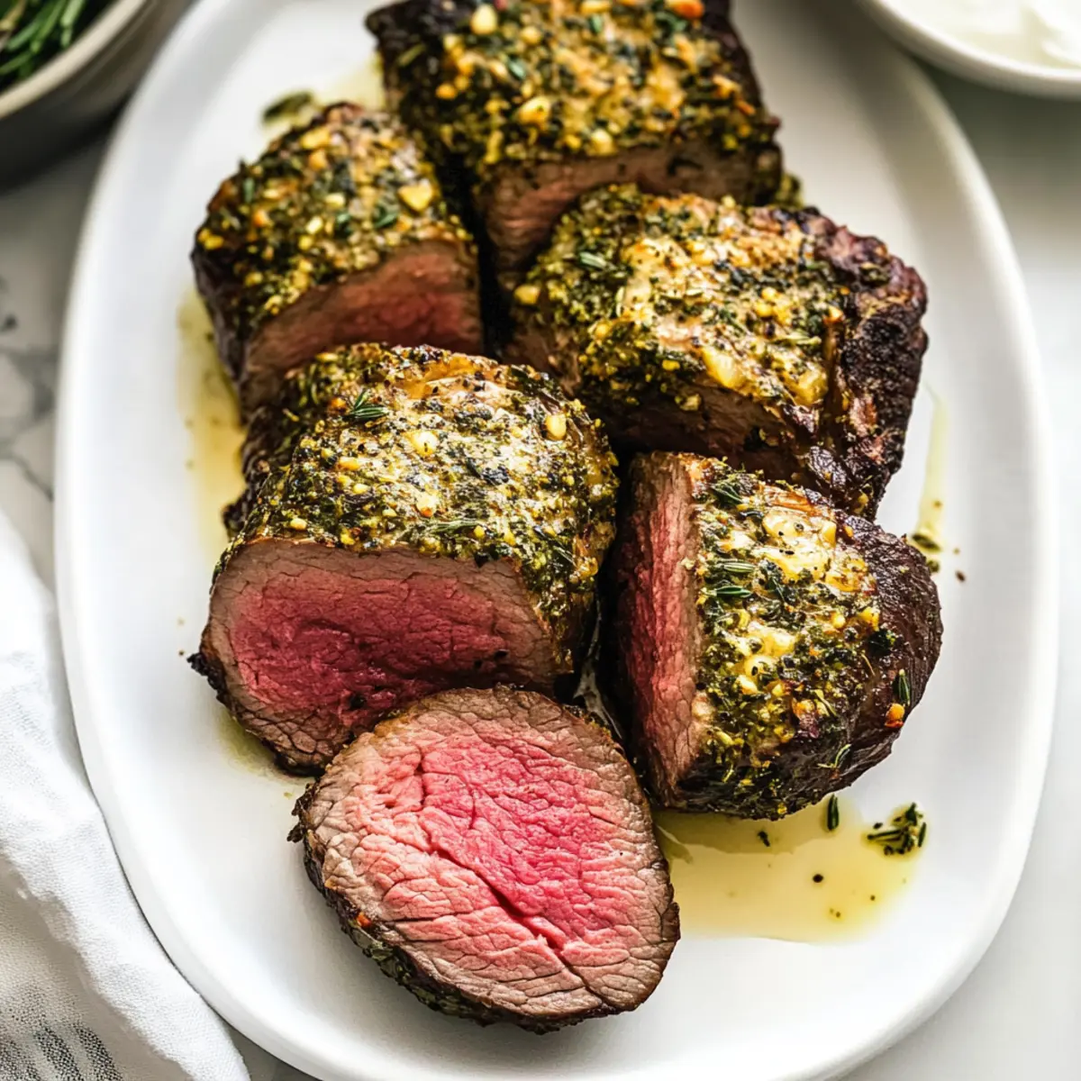 Mustard Base: Brush the tenderloin with Dijon mustard before adding the herbed butter. This tangy layer adds complexity and pairs wonderfully with the garlic flavors.