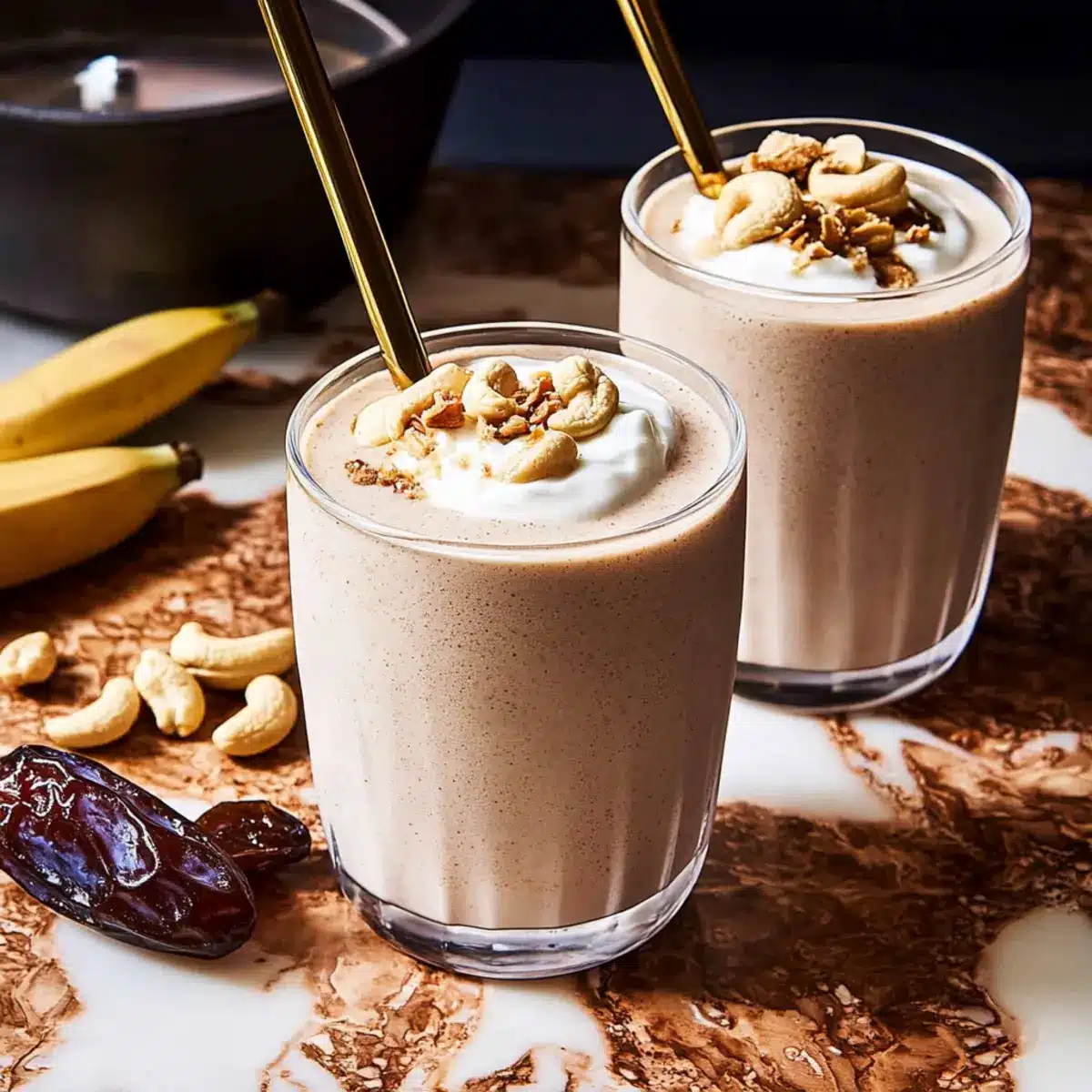 Creamy Texture: The combination of soaked cashews and frozen banana creates a luxuriously thick shake that rivals any milkshake. Natural Sweetness: Large Medjool dates provide a rich sweetness that you’ll love—no refined sugars here! Gut-Friendly Ingredients: Packed with fiber and healthy fats, this shake supports digestive health seamlessly. Easy to Make: In just a few minutes, you can blend everything up for a satisfying treat that’s perfect for busy days. Versatile Base: Feel free to switch up the nut milk or add in some greens; the options are endless! Enjoy this refreshing pairing as a delightful snack or as a nutritious breakfast on the go.
