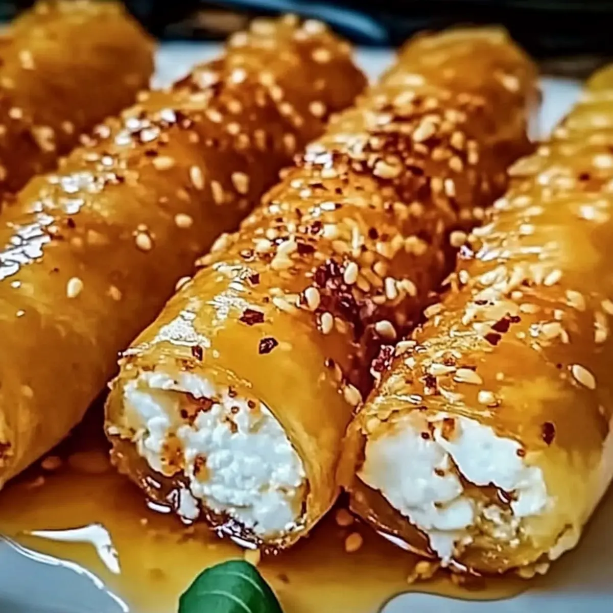 Crispy Oven Fried Feta Rolls with Sweet Chili Honey Drizzle