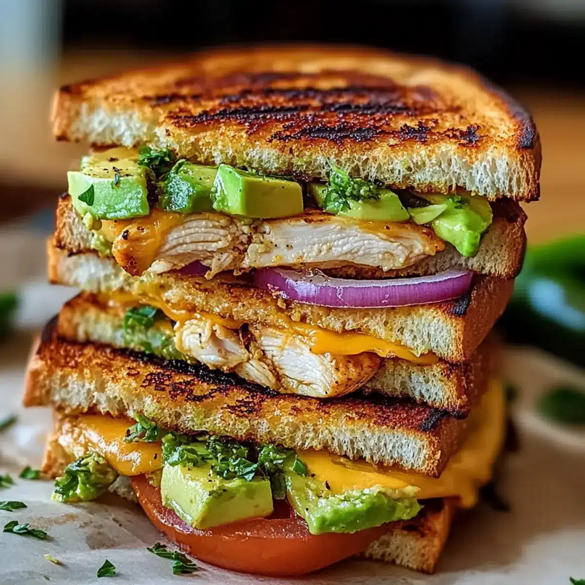 Make-Ahead: Cooked chicken and sliced ingredients can be prepped in advance; store them separately and assemble the sandwich just before grilling for maximum freshness.