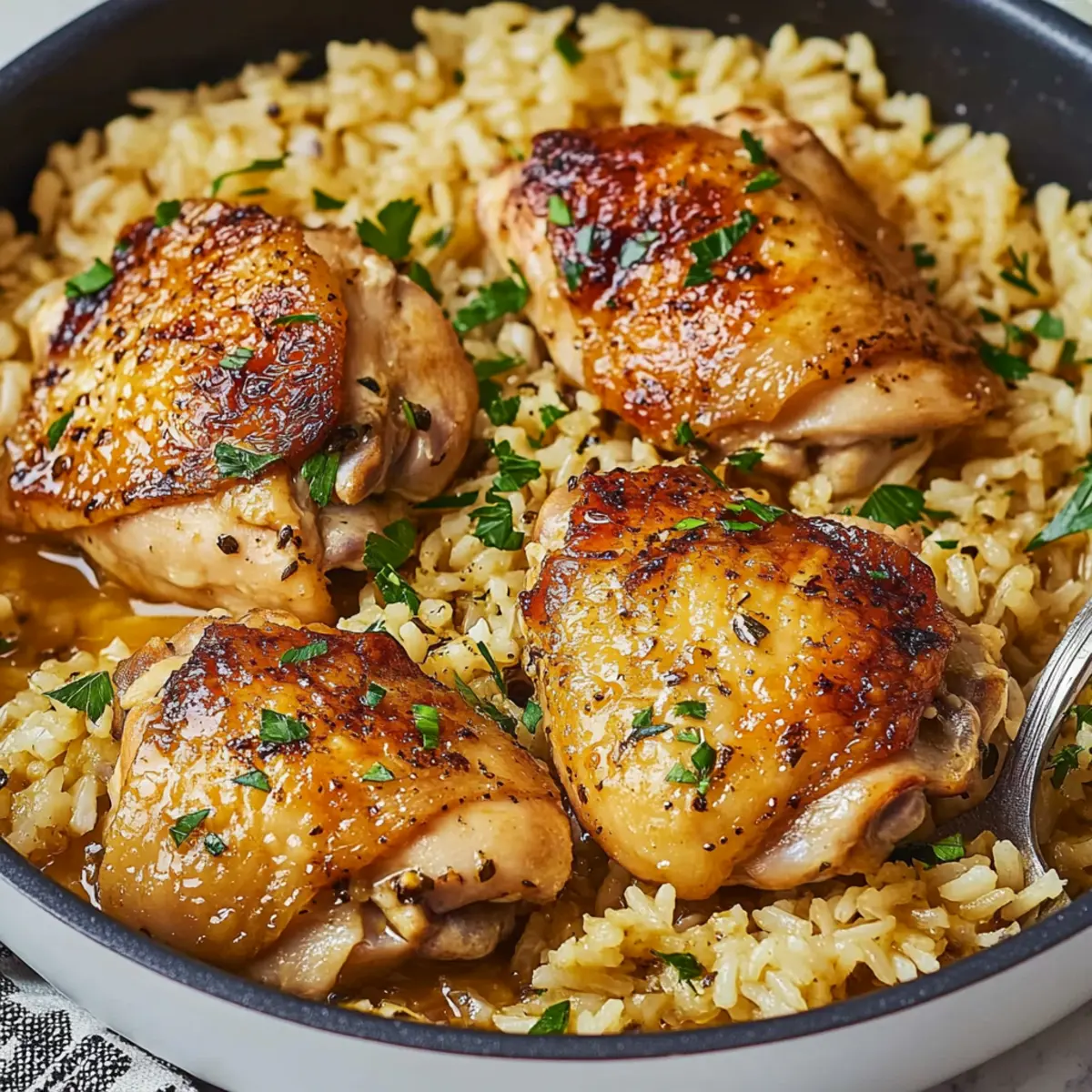 This One-Pan Chicken Thighs and Rice recipe is not only delicious but also incredibly customizable, making it a meal your family will love!