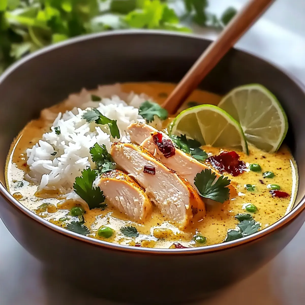 In bowls, serve a generous scoop of the fluffy rice topped with the luscious broth and sliced chicken. Garnish each bowl with chopped green onions, fresh cilantro, and lime wedges for a burst of color and flavor. This lovely presentation makes each serving of Coconut Chicken Brothy Rice even more inviting.
