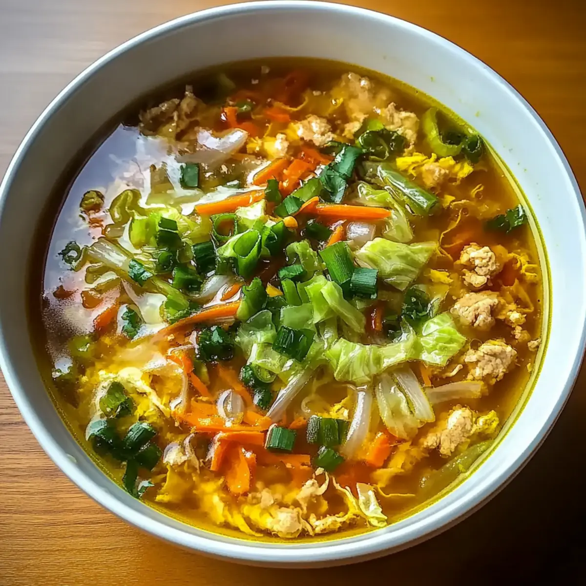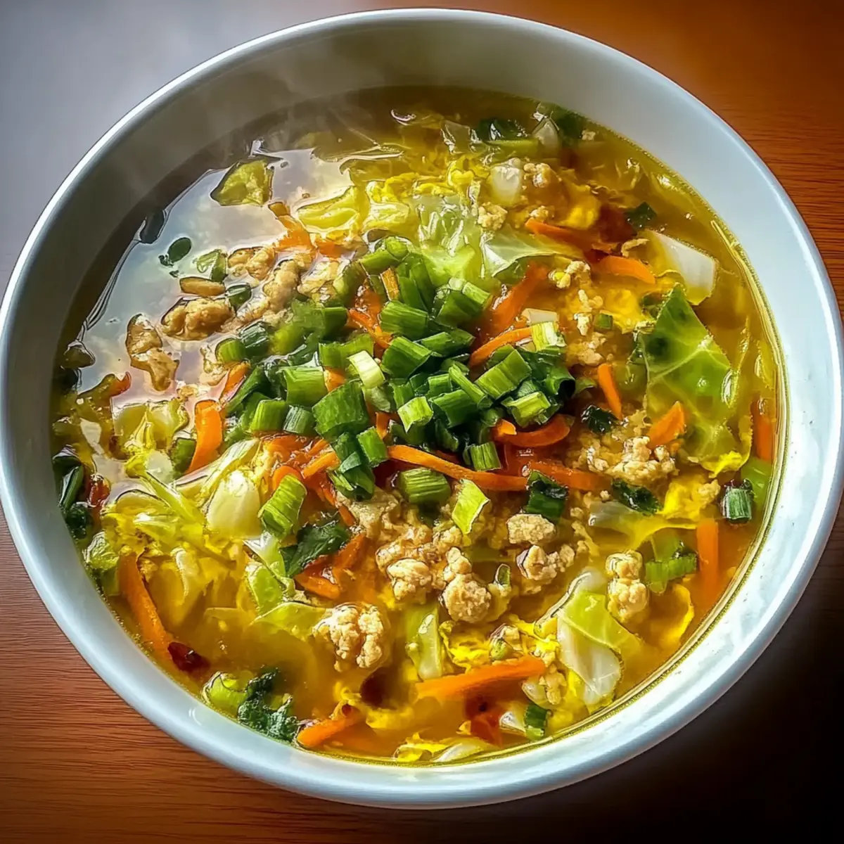 If you’d like to enhance the richness of your soup, slowly drizzle in the beaten eggs while stirring in a circular motion. This technique will create delicate egg ribbons that float throughout the soup, providing a lovely texture and visual appeal that complements the rest of your Cozy & Easy One-Pot Egg Roll Soup.