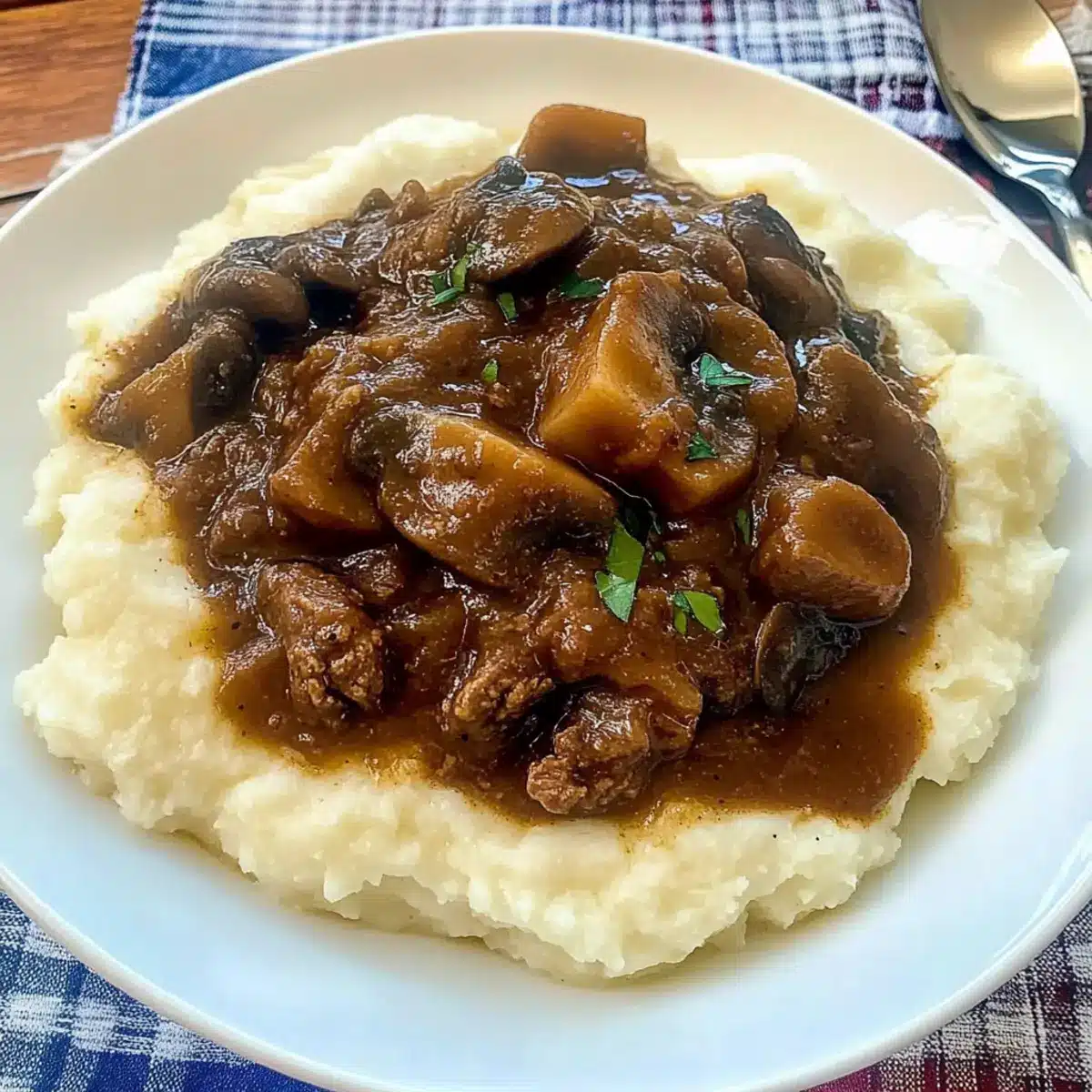 • Cream of Mushroom Soup – This small can (10.5 oz) thickens the stew beautifully; you can also use homemade mushroom soup for freshness.