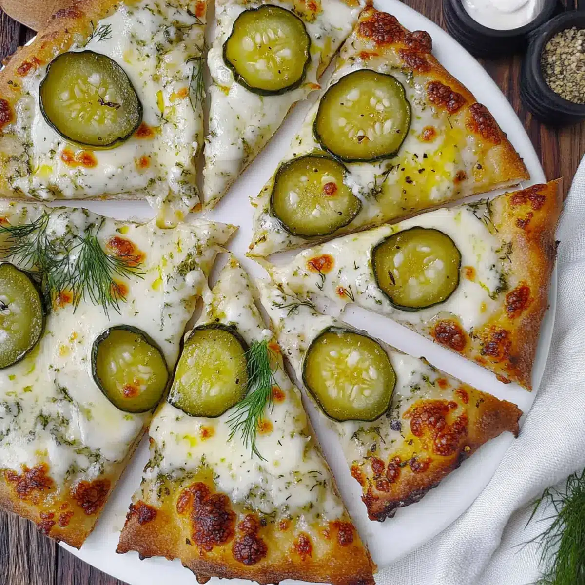 These Dill Pickle and Garlic Pizza components are perfect for meal prep enthusiasts looking to save time! You can prepare the dill pizza crust up to 24 hours in advance; just store it wrapped in plastic wrap to keep it fresh. Additionally, the garlic white sauce can be made and refrigerated for up to 3 days. To reheat, gently warm it on the stove before spreading it on your dough. When ready to serve, simply assemble your pizza by adding the mozzarella and dill pickle slices, and bake it straight from the fridge for a quick, delightful meal that’s just as delicious when freshly made!