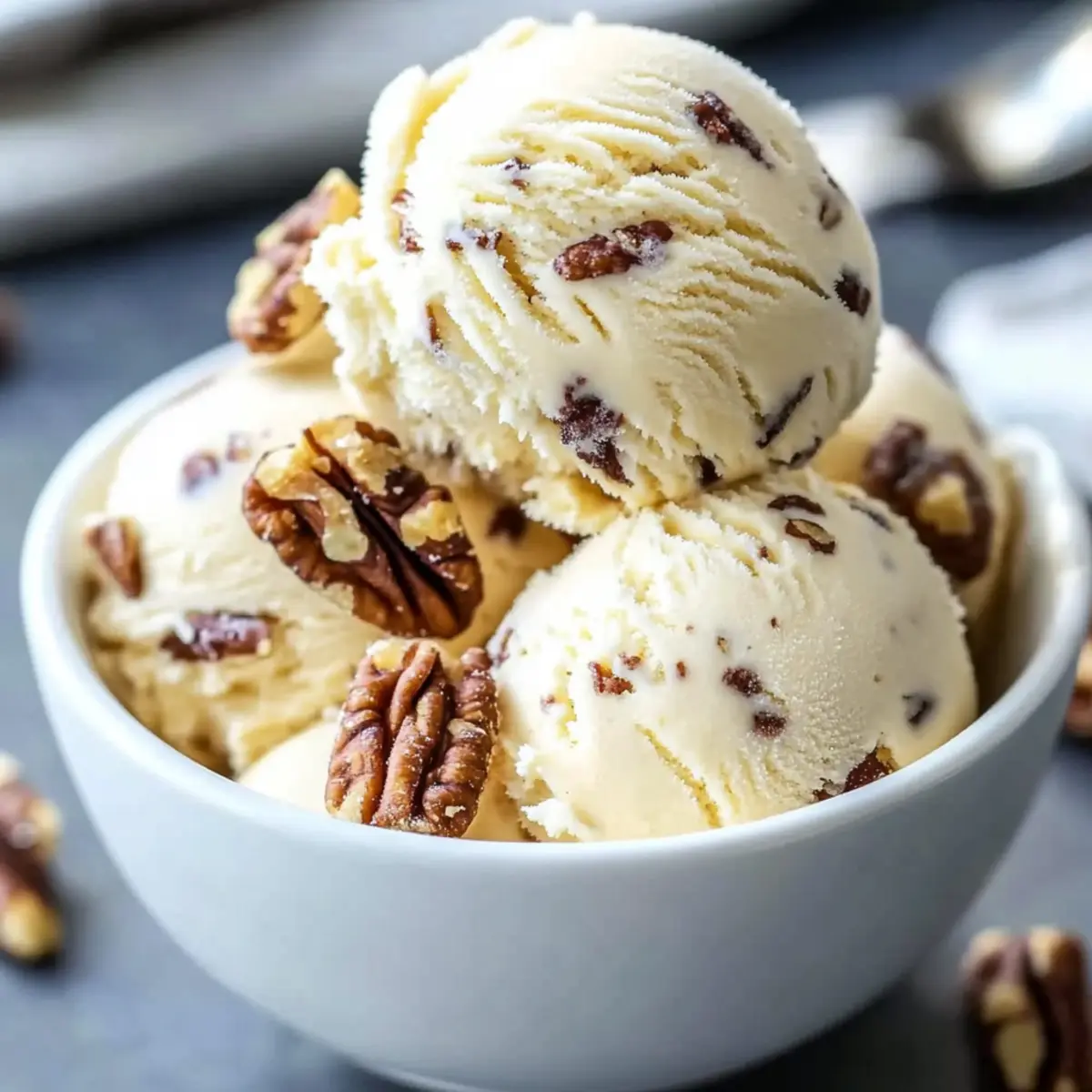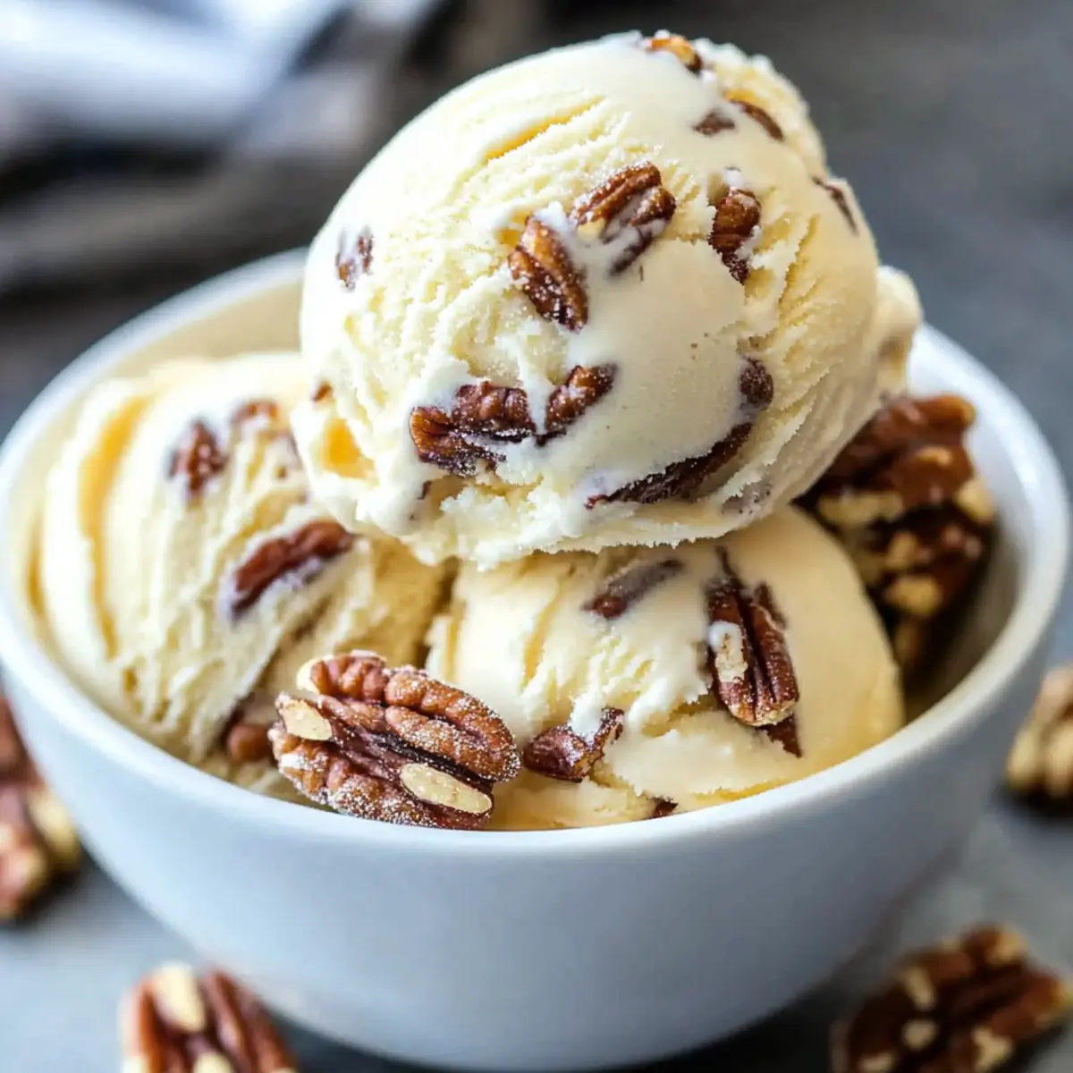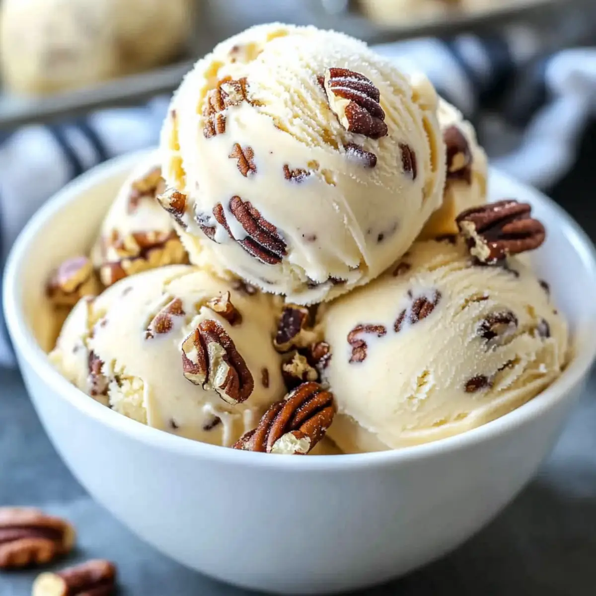 No Churn Simplification: If you’re short on time or don’t have an ice cream maker, whip 2 cups of heavy cream to soft peaks, fold in sweetened condensed milk, and add toasted pecans for a delicious no-churn option.