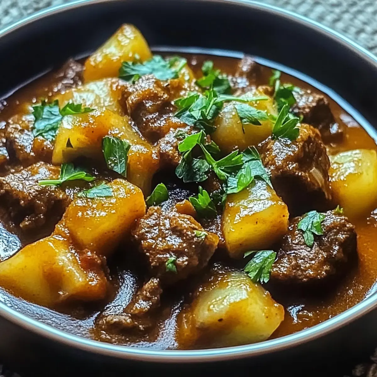 Once done, ladle the steaming goulash into bowls and finish with a sprinkle of freshly chopped parsley for a burst of color and brightness. The vibrant greens elevate the heartwarming stew, making your Egyptian Beef Goulash not only delicious but also visually appealing.