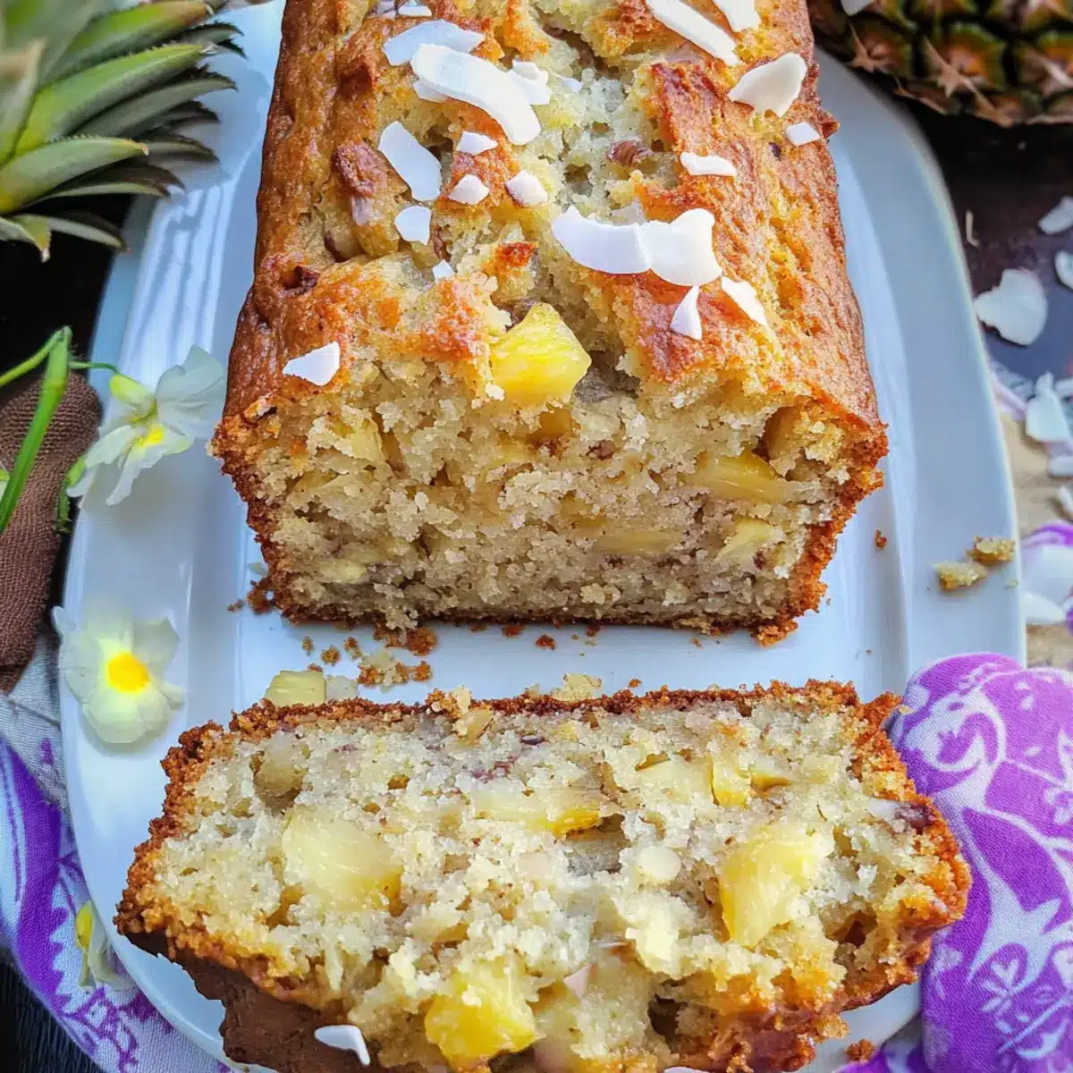 As I pulled a loaf of Hawaiian Banana Bread with Pineapple from the oven, the intoxicating aroma of caramelized bananas mingling with tropical pineapple and coconut wafted through my kitchen, instantly transporting me to a sun-soaked beach. This delightful recipe not only promises quick prep but also offers a stunning twist on a classic favorite, making it perfect for any occasion! Moist and fluffy, each slice is studded with crunchy macadamia nuts, creating a symphony of textures that is sure to please everyone at the table. Whether you’re craving a unique dessert or a cozy afternoon snack, this Hawaiian-inspired bread will undoubtedly become a cherished addition to your baking repertoire. Are you ready to embark on a culinary escape that celebrates the sweet flavors of paradise? Let’s dive into this deliciously easy recipe!