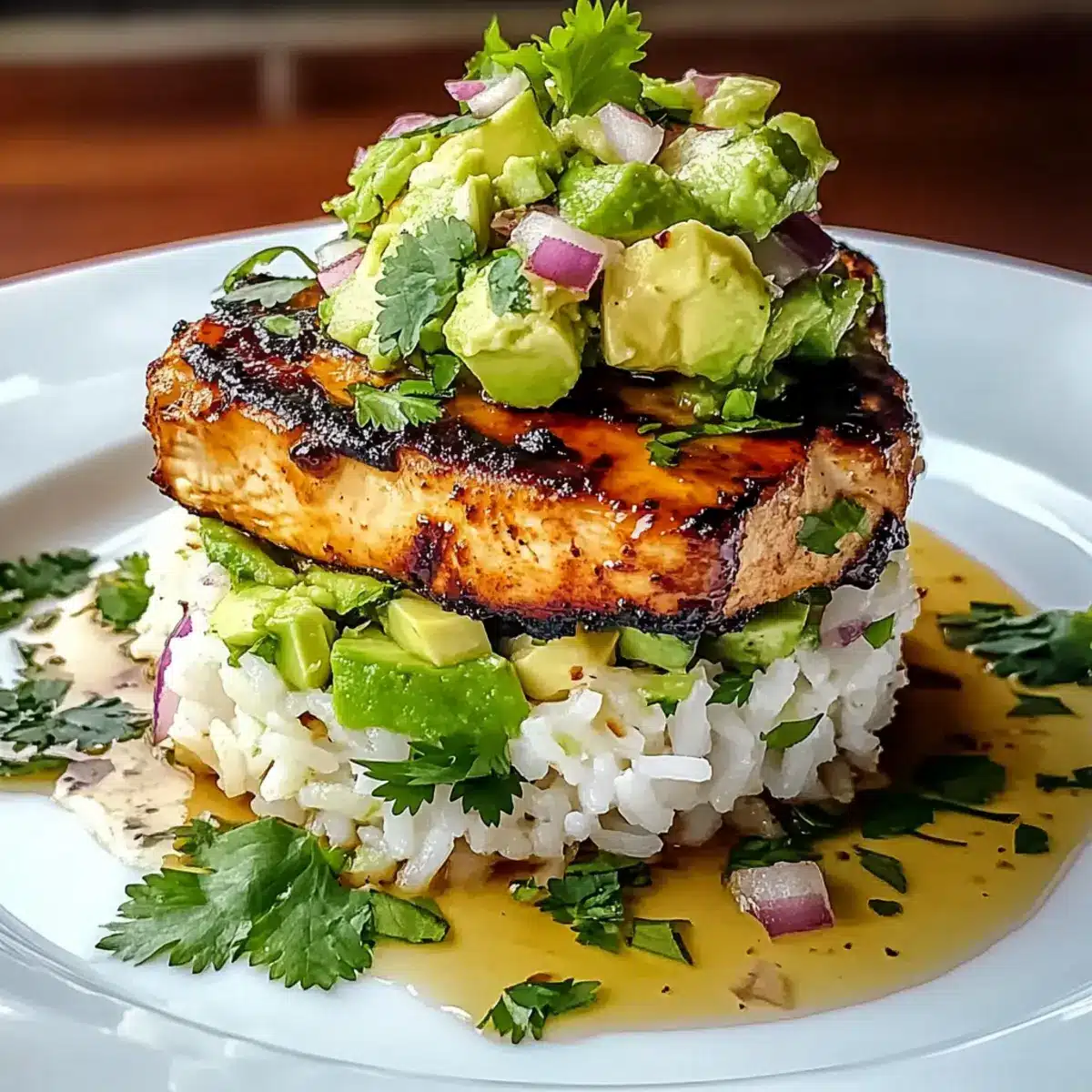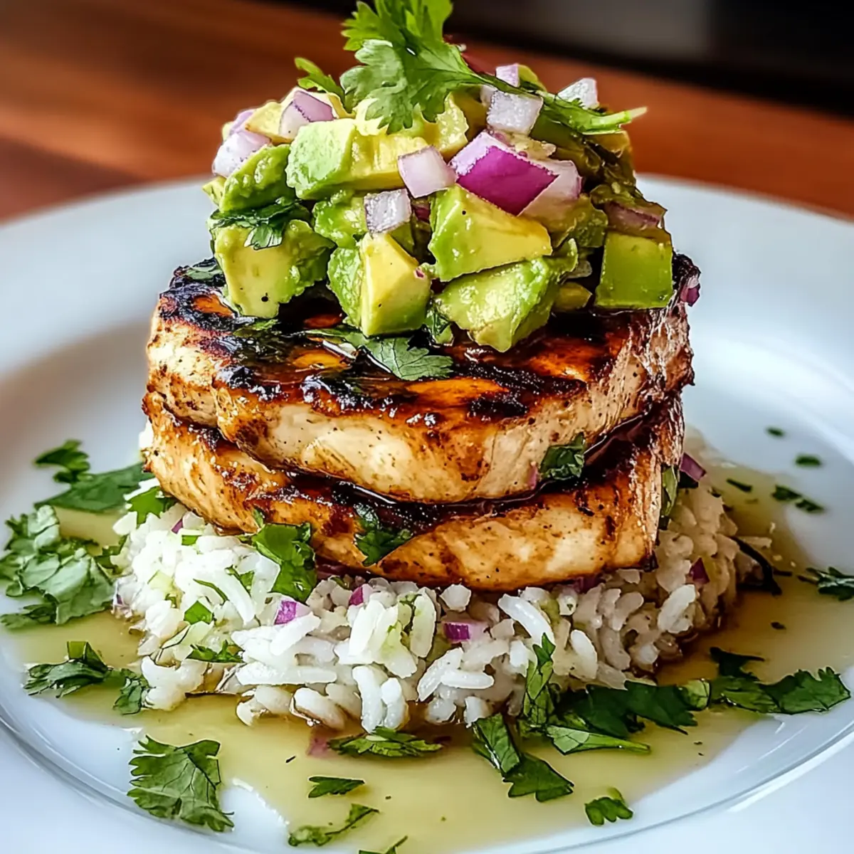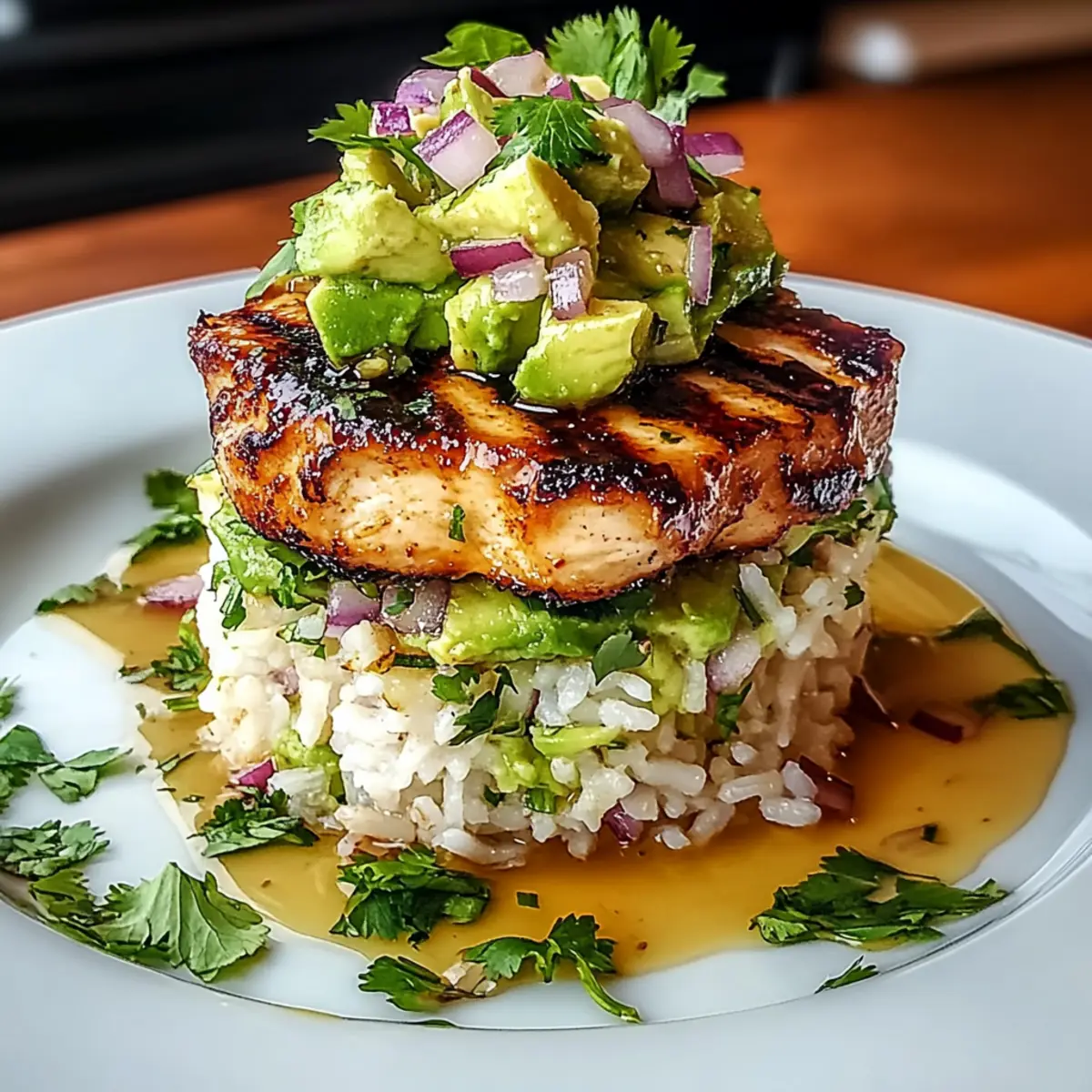 Savor the Bright Flavors of Honey Lime Chicken & Avocado Rice Stack