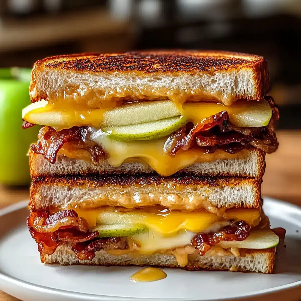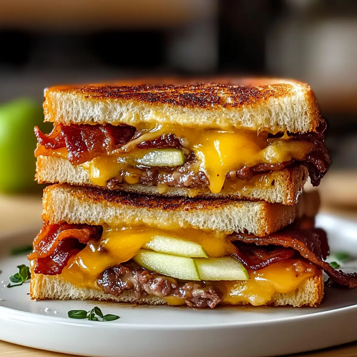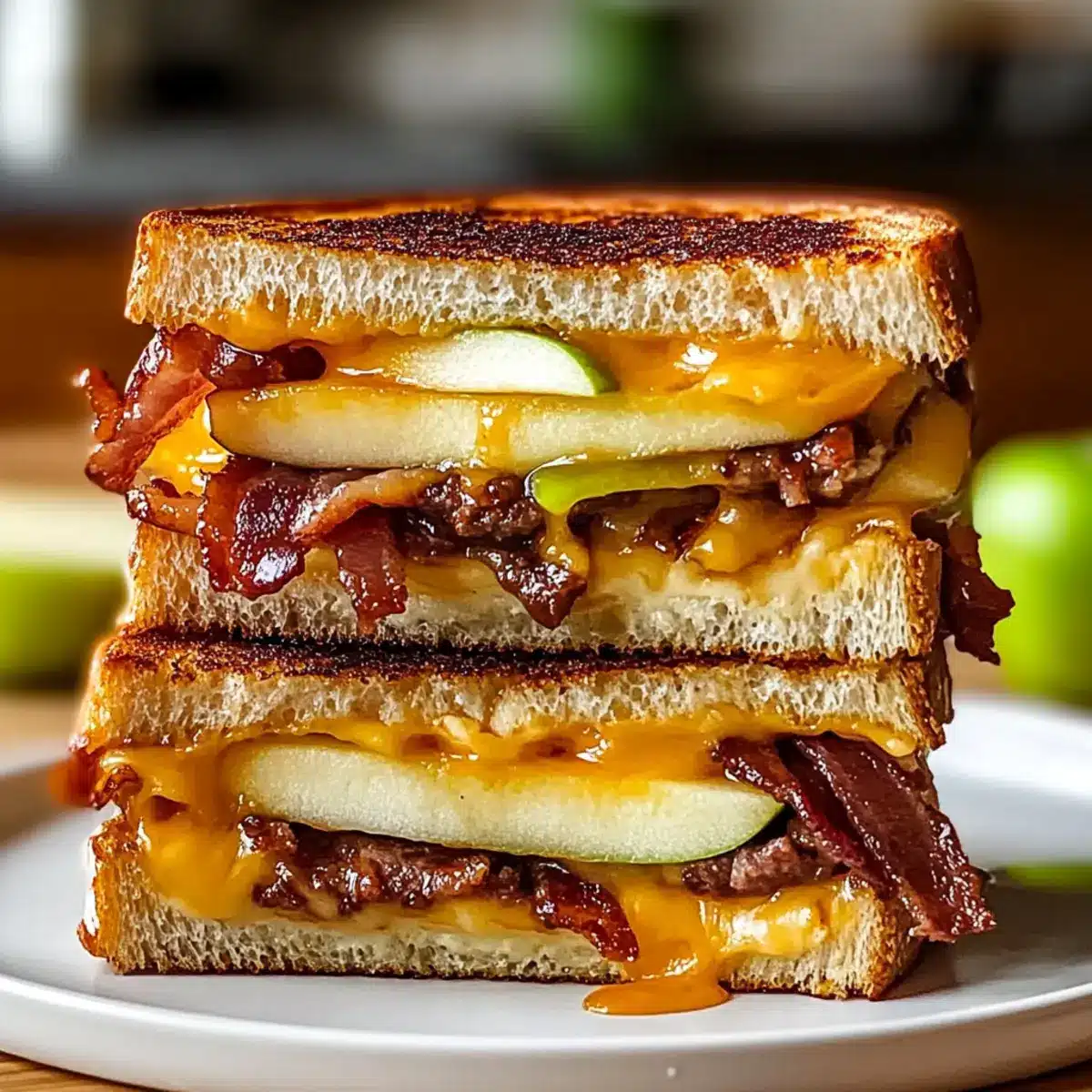 Indulge in Hot Honey Apple Cheddar Beef Bacon Grilled Cheese Delight