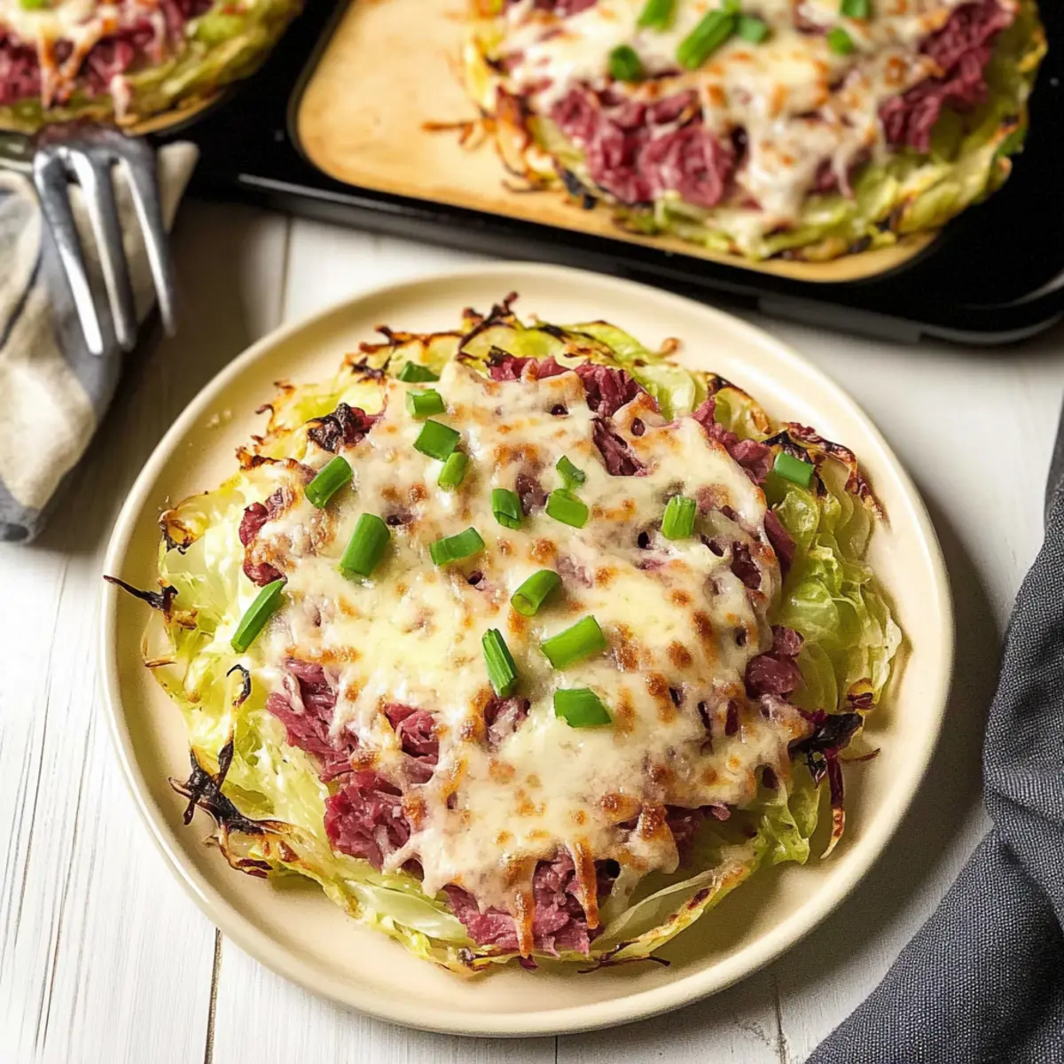 Return the baking sheet to the oven for an additional 5 minutes, allowing the cheese to melt and the corned beef to heat through. Keep an eye on the toppings; the cheese should be bubbling, and the whole concoction will emit an irresistible aroma. This step transforms your cabbage into a cheesy, hearty meal!