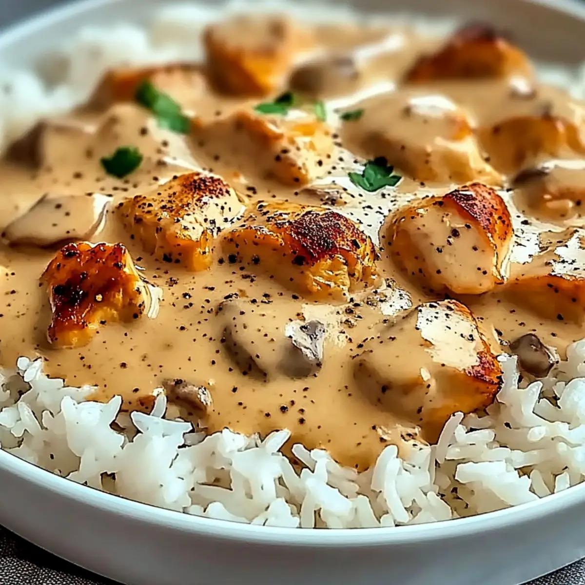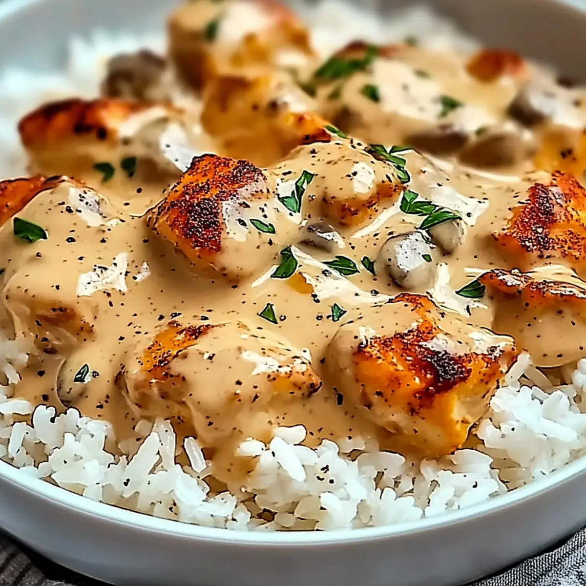 Flavor-Packed: The creamy mushroom sauce clings to tender chicken and rice, delivering a punch of rich flavor in every bite.
