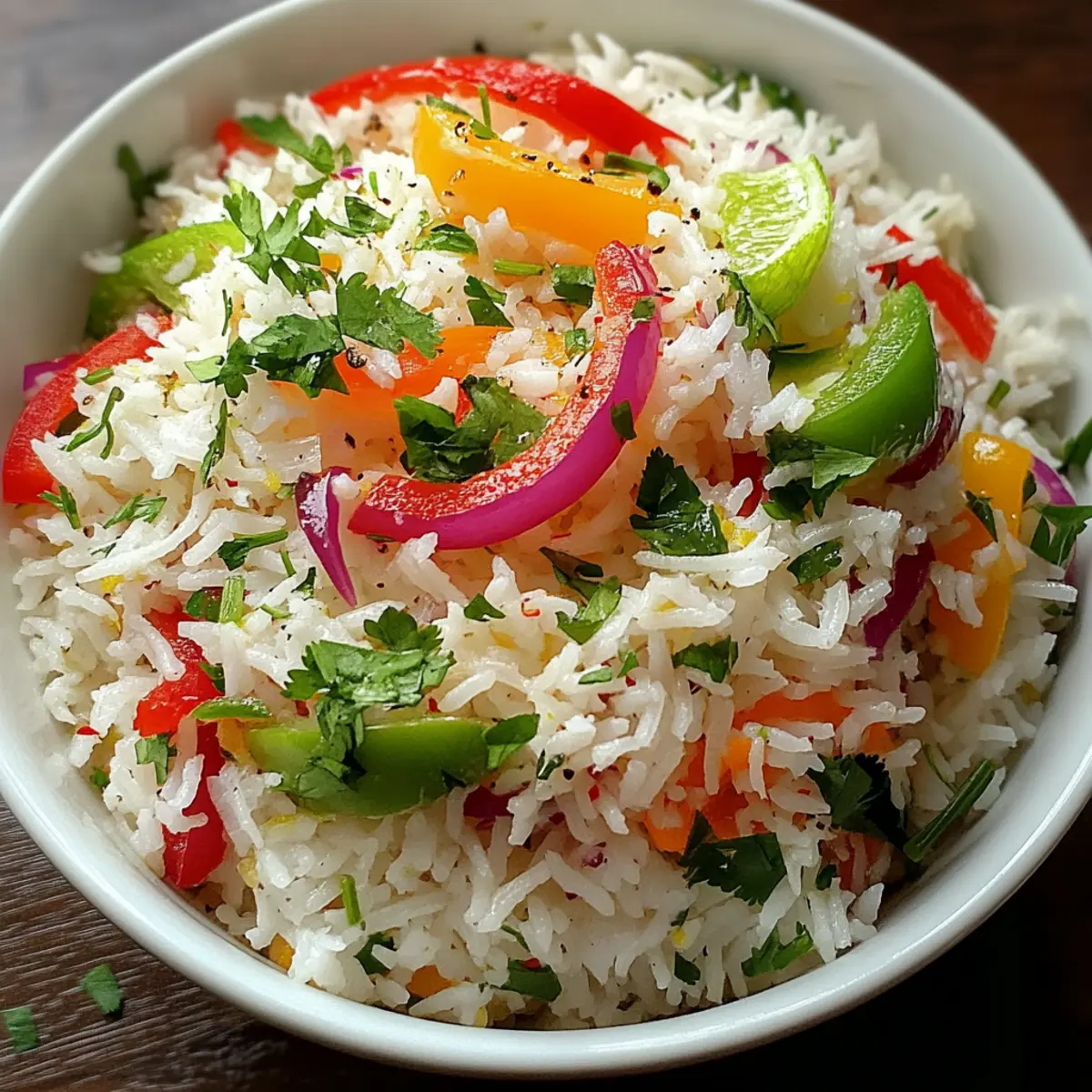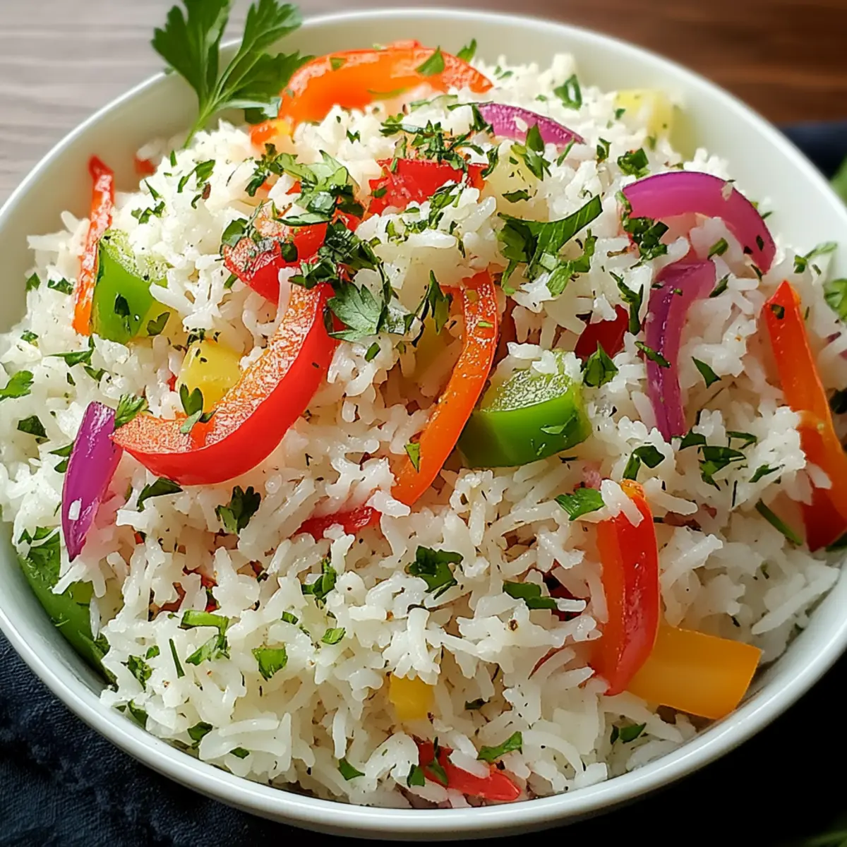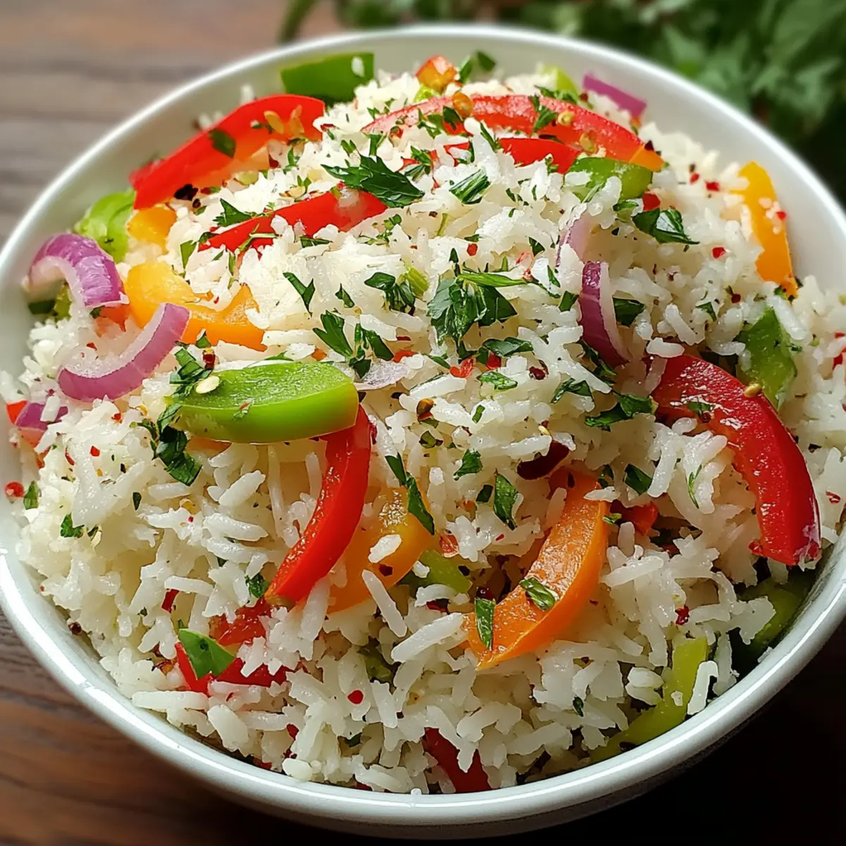 Vibrant, Flavorful Dish: The Island Coconut Pepper Rice bursts with tropical taste, transporting your senses straight to the beach.