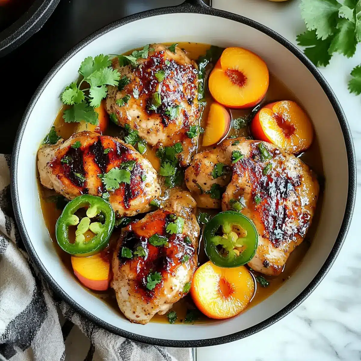 Once out of the oven, let your Jalapeno Peach Chicken rest for a few minutes before serving. This resting time allows the juices to redistribute throughout the chicken, making each bite succulent and flavorful. Garnish with any remaining glaze before digging in!