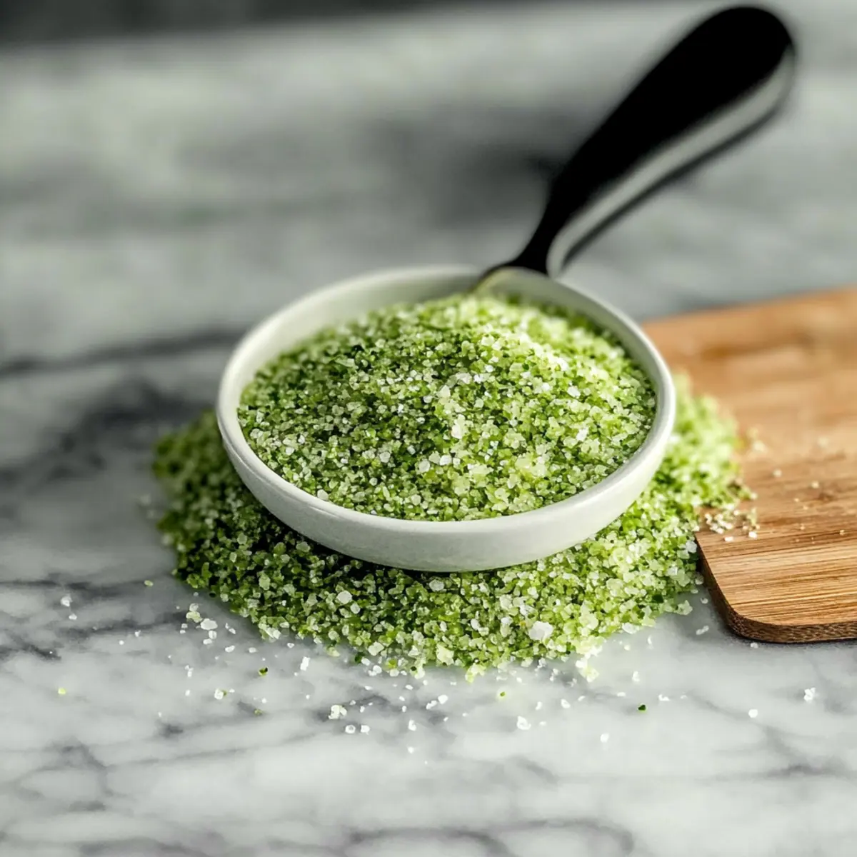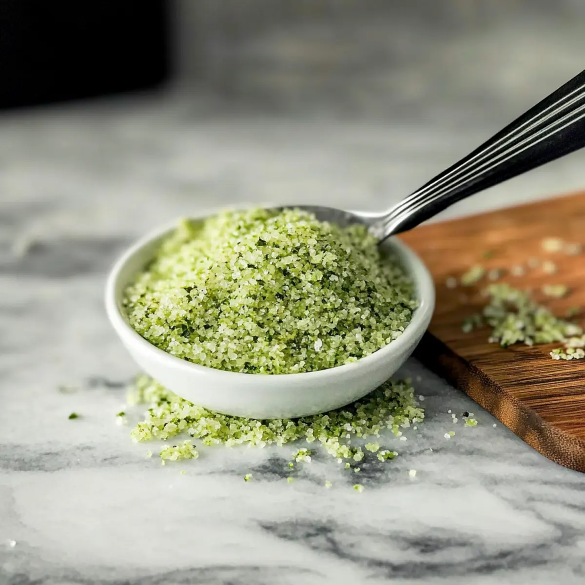 - Check the texture; pulse more if chunkier salt is desired, but avoid over-processing.