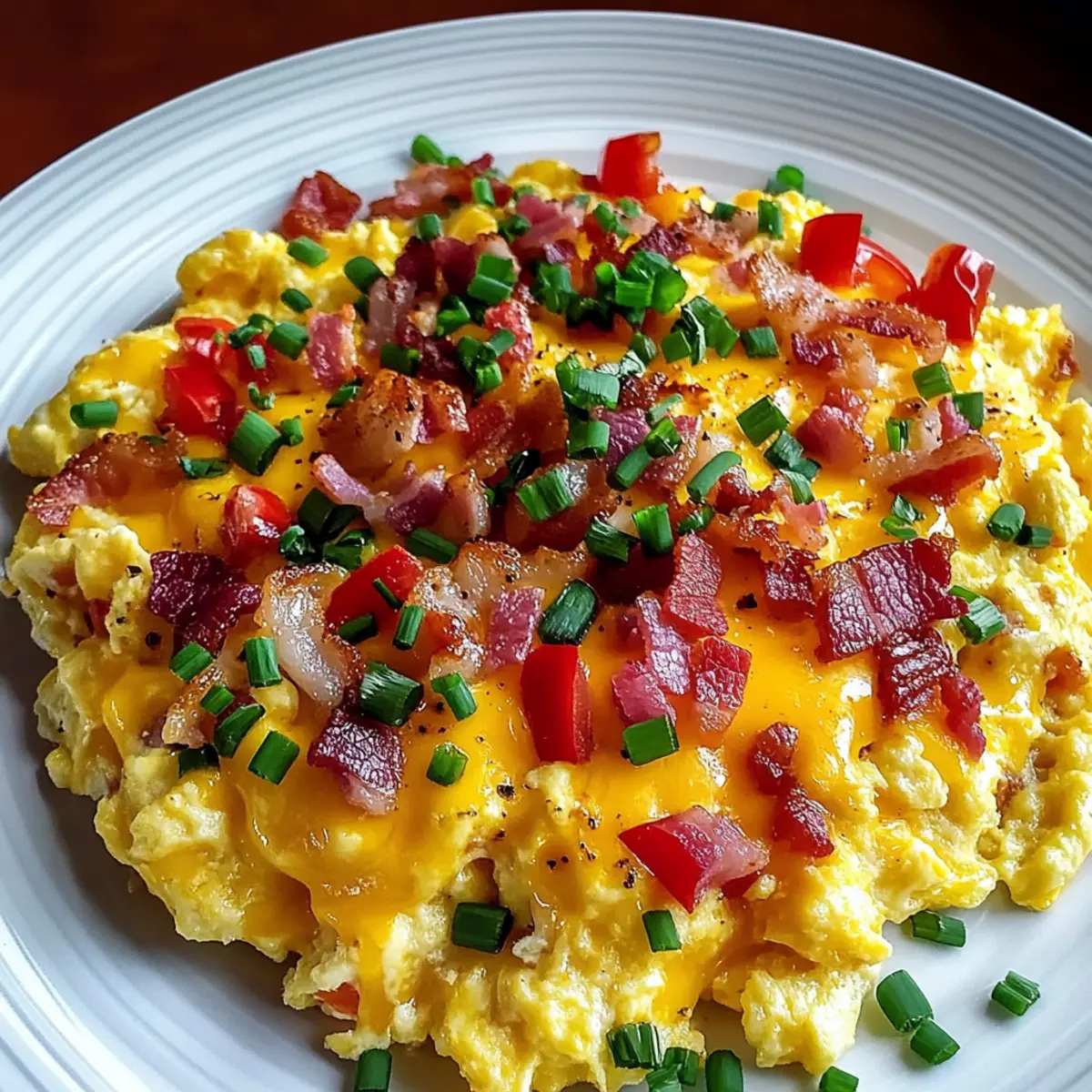 Absolutely! Opt for large, fresh eggs for that fluffy texture, and don’t shy away from high-quality shredded cheddar cheese—this really elevates your Loaded Scrambled Eggs. When selecting vegetables, choose firm bell peppers and aromatic onions for the best taste. If you’re in doubt, look for bright colors and firm textures as indicators of freshness.