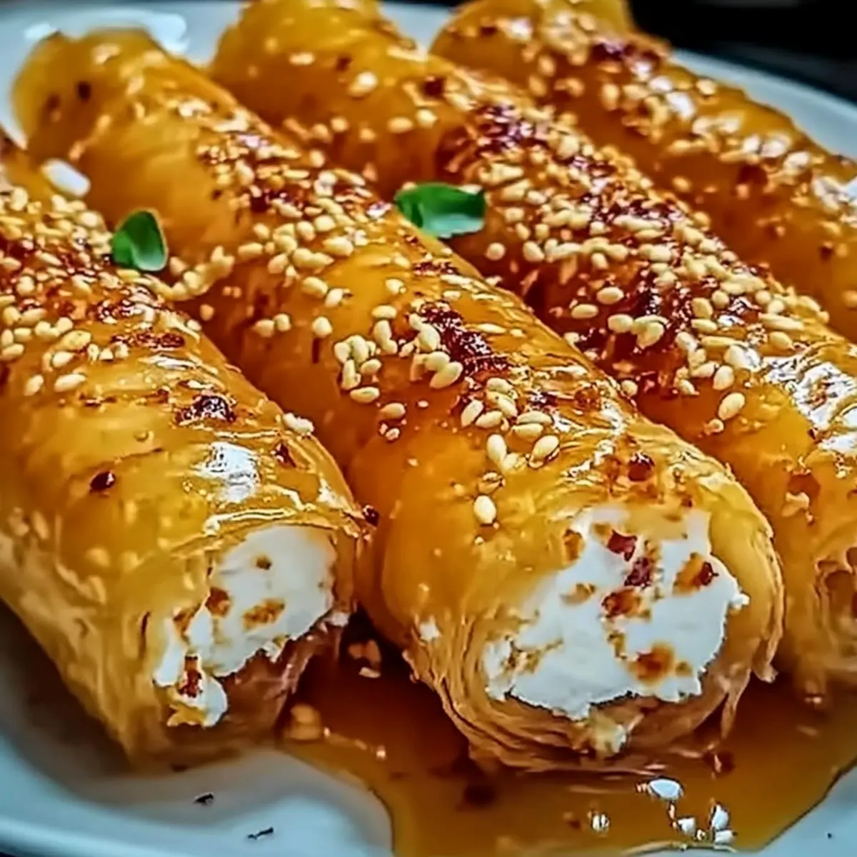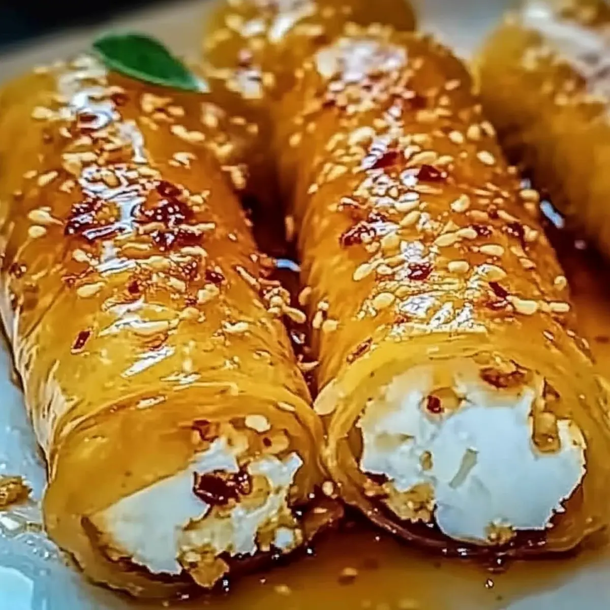 Crispy Oven Fried Feta Rolls with Sweet Chili Honey Drizzle