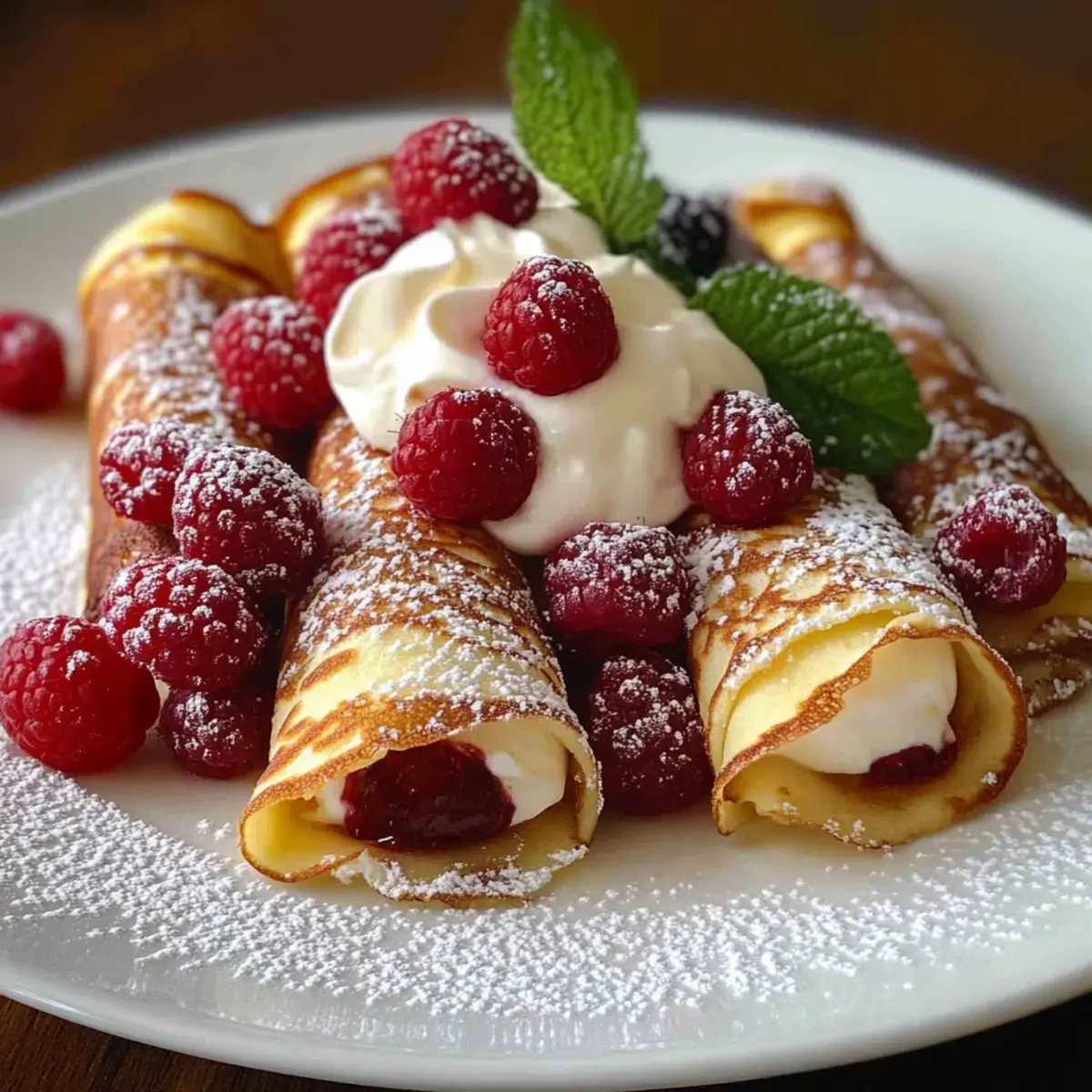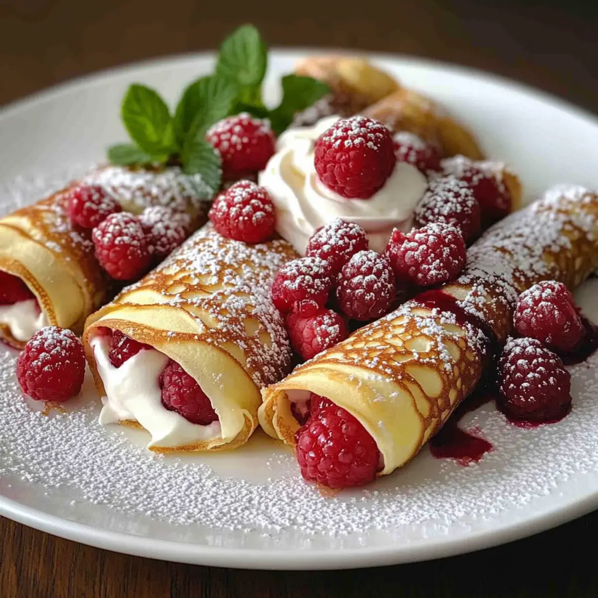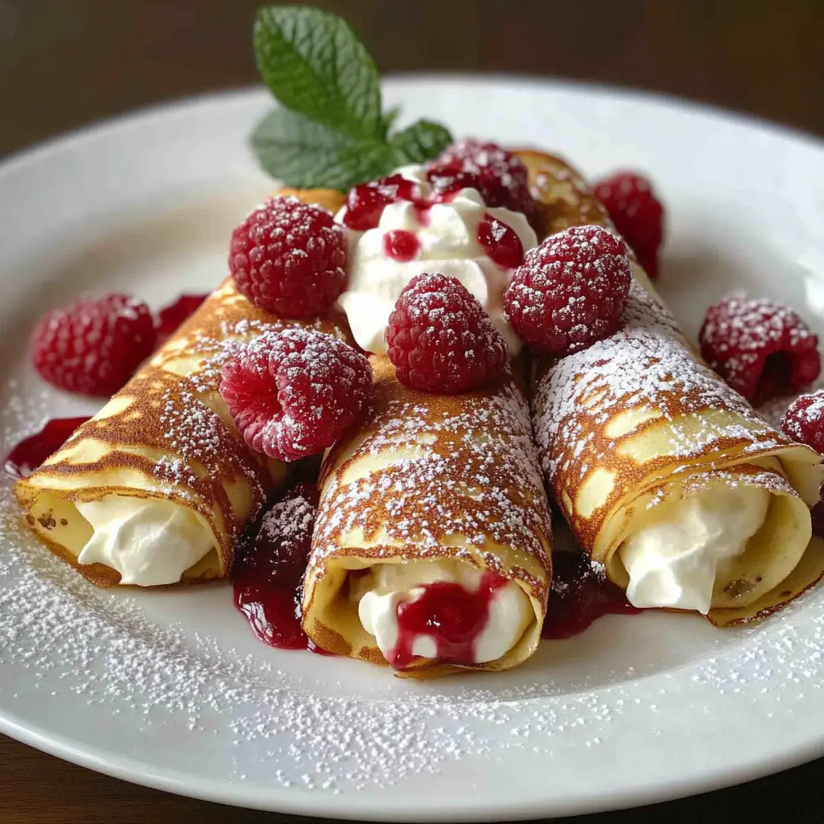 To elevate your Raspberry Vanilla Cream Crepes, dust them lightly with powdered sugar for an elegant finish. If desired, drizzle with raspberry coulis or melted chocolate for an indulgent touch. Garnish the plates with mint leaves or a sprinkle of lemon zest for added freshness. Serve immediately to enjoy the delightful combination of flavors and textures!