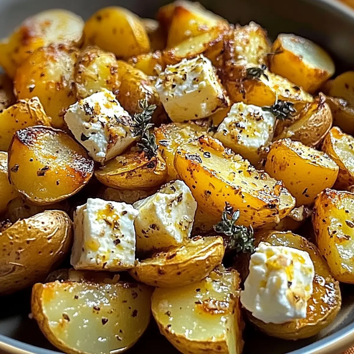 The delightful sizzle of potatoes hitting a hot pan instantly transforms my kitchen into a warm gathering spot. Today, I’m thrilled to share my recipe for Crispy Roasted Potatoes with Baked Feta and Garlic—a dish that’s as comforting as it is impressive! Imagine biting into perfectly golden potatoes, their crispy exteriors giving way to a soft, savory interior, all while the creamy feta and aromatic garlic create an enticing medley of flavors. This recipe is a breeze to prepare and is a fantastic crowd-pleaser, perfect for both cozy dinners at home and lively gatherings with friends. And if you’re looking to mix things up, there’s plenty of room for ingredient swaps that can elevate this Mediterranean side dish even further. What variations of this dish will you dream up?