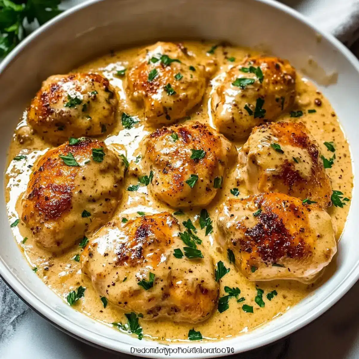 Lower the heat and return the seared chicken to the skillet, nestling it in the creamy sauce. Allow the chicken to simmer on low for 8-10 minutes until fully cooked. Ensure the internal temperature reaches 165°F (75°C), and watch as the chicken absorbs the rich, buttery sauce, making each piece delectable.