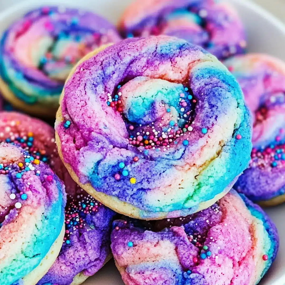 These whimsical Unicorn Cookies are perfect for meal prep, allowing you to create magic in your kitchen even during busy weeks! You can prepare the cookie dough up to 3 days in advance; simply refrigerate it in an airtight container. To maintain quality and freshness, chill the dough as it helps prevent spreading during baking. When you’re ready to bake, scoop out the dough and roll it in sugar or sprinkles before placing it on the baking sheet. Bake as directed, and enjoy the same delightful gooeyness and vibrant colors of fresh Unicorn Cookies! With these make-ahead options, you’ll have a cheerful treat ready for any occasion without the last-minute rush.