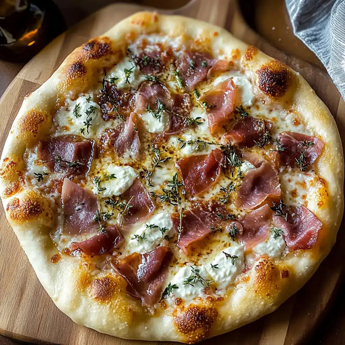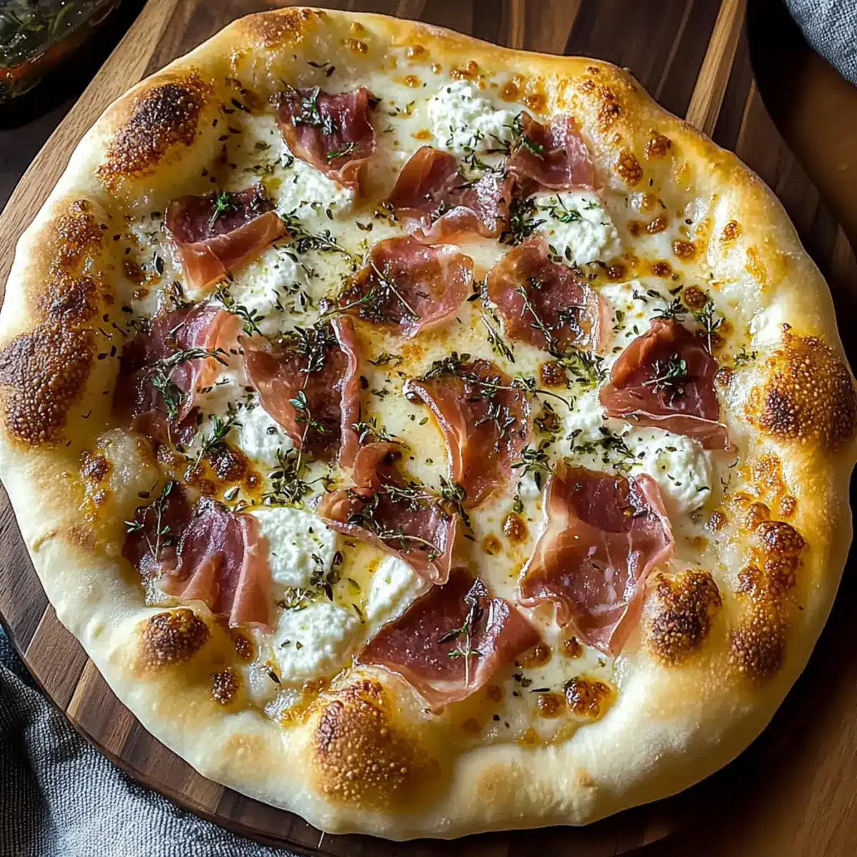 Savory White Pizza with Beef Prosciutto and Hot Honey Delight